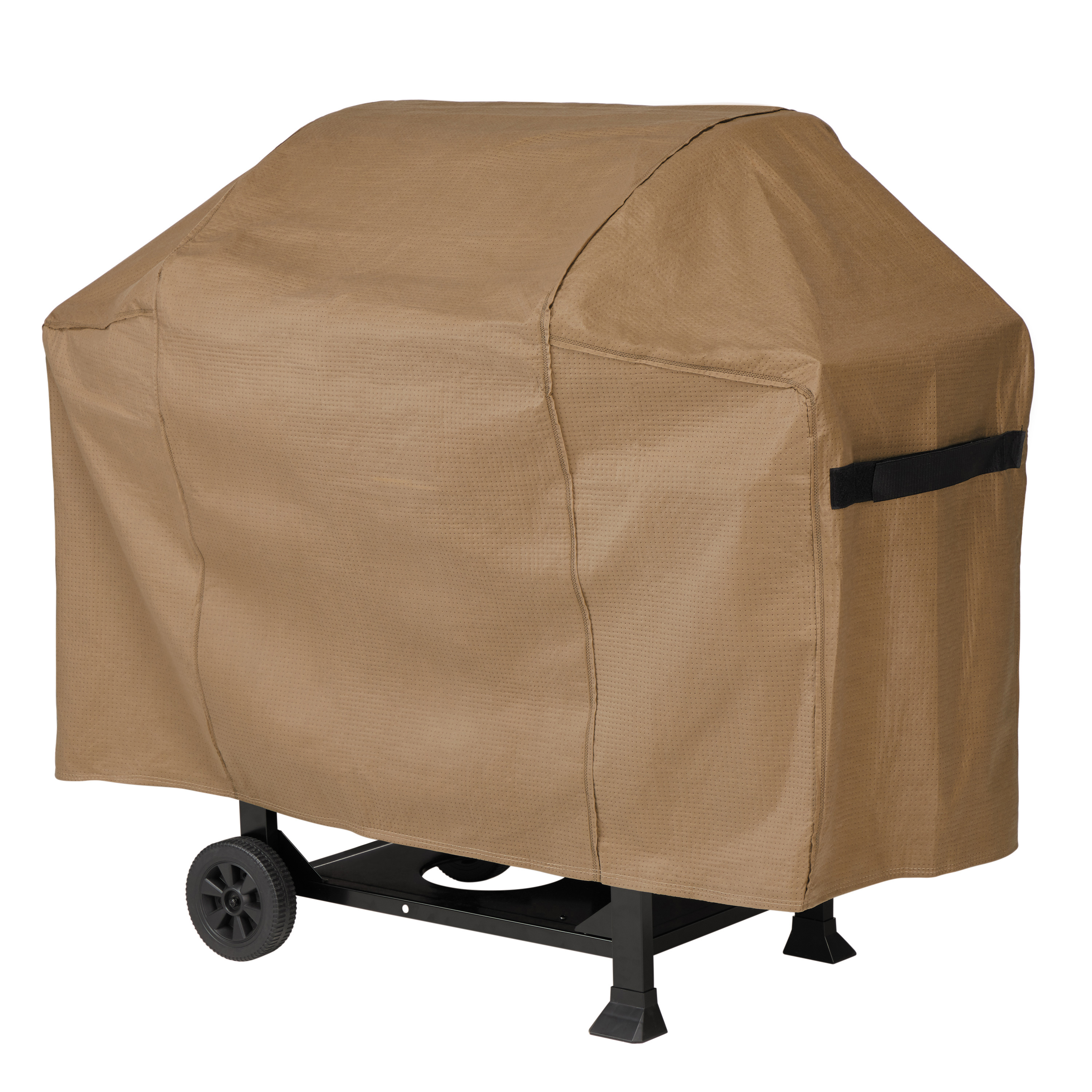 Ideal for use in harsh weather and high wind conditions. Duck Covers Soteria Series patio furniture covers are designed using a durable fabric with a water-resistant backing features a sporty webbed accent. Tape sealing at critical seams prevents leaking and double-stitched seams provide extra durability.